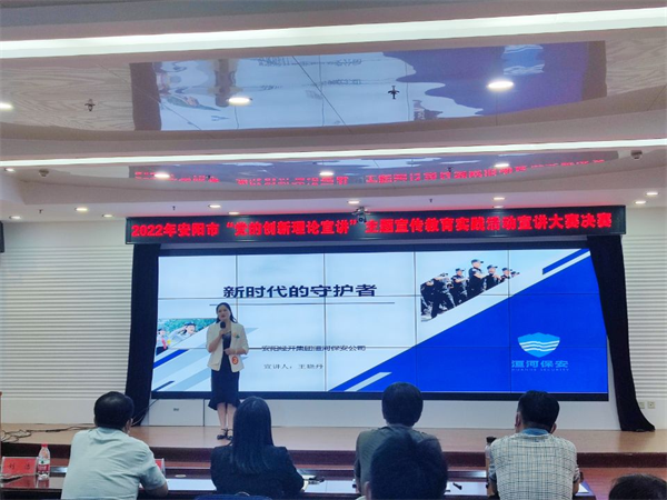 王晓丹以《新时代的守护者》为主题,以公司2021年7月抗洪救灾事迹为主线,讲述了基层保安员英勇救人、无私奉献的壮举,充分展现了洹河保安公司成立30余年来的责任与担当,宣扬了洹河保安广大党员干部职工勇于担当、奋发有为的精神风貌。